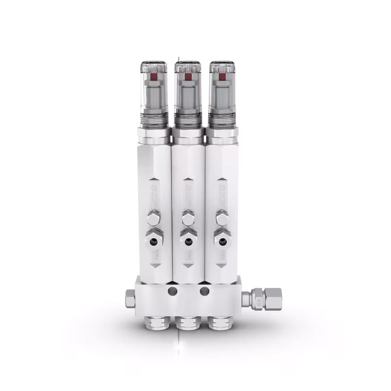 - Ausführung: SL-6 Verteilerleiste mit drei Schmierstoffverteilern