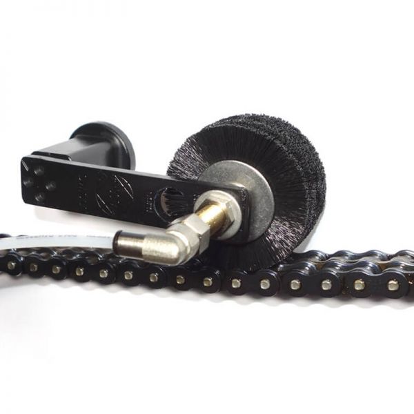 Montiert auf den optionalen Flexi-Montageschwinge ist bei minimalem Anpressdruck stets guter Abrollkontakt gewährleistet. Die variable Beite erlauben die Anwendung an verschiedensten Antriebsketten wie Duplexketten oder gar Triplexketten, oder an Transportketten, Förderketten, Transportbändern, Stahlseilen, Drahtseilen und dergleichen.